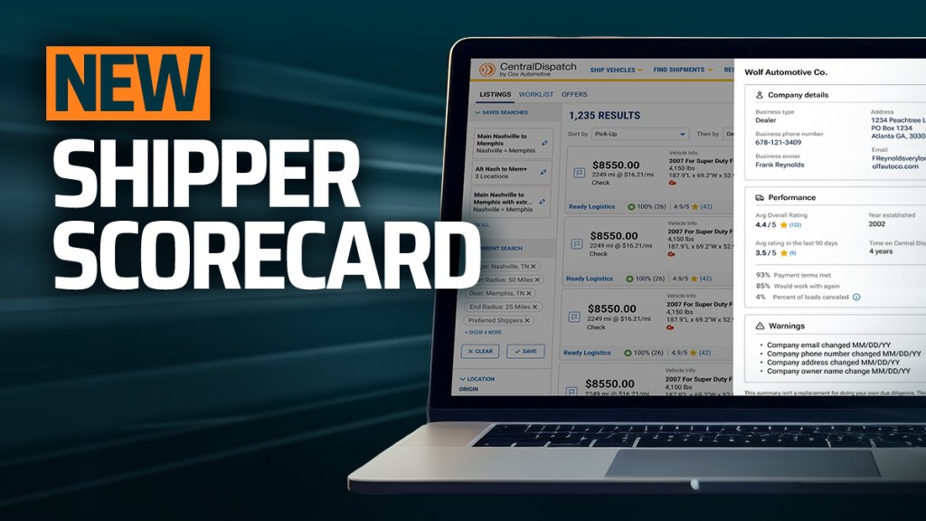 More informed partnering decisions are just a click away. Carriers can now view any shipper’s scorecard, right from the search results page! Just click a shipper’s name to open up a slide-out displaying their comprehensive profile, including company details, Central Dispatch ratings, warnings, and other key information.